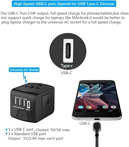 Amazon Com Saunorch Universal International Travel Power Adapter W High Speed 2 4a Usb 3 0a Type C Wall Charger European Adapter Worldwide Ac Outlet Plugs Adapters For Europe Uk Us Au Asia Black Electronics - Saunorch universal international travel power adapter.